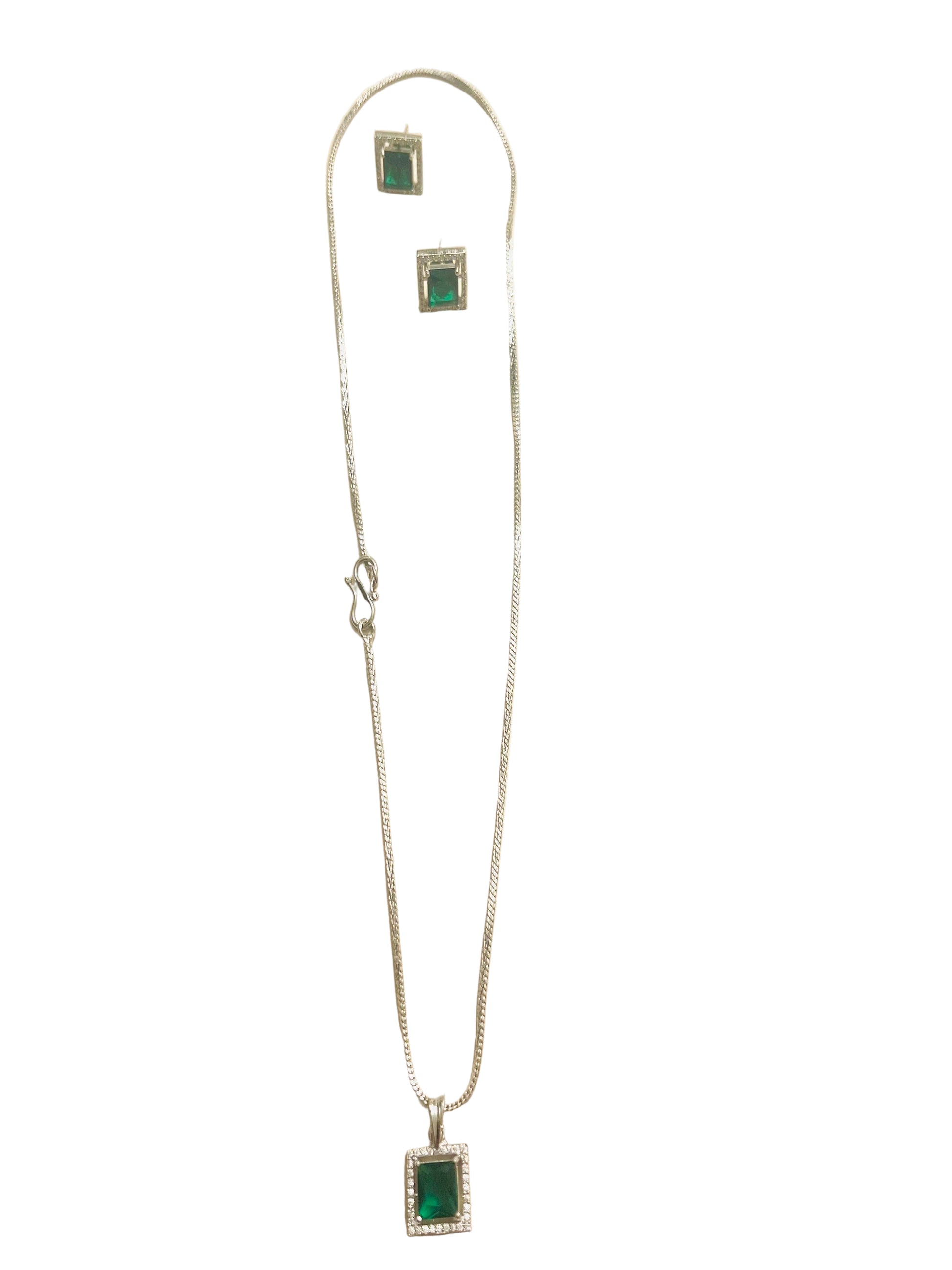 Elevate your everyday wear with our AD Pendant Set. The very delicate American Diamond pendant, accented with a vibrant green stone inspired from emerald stone, adds a touch of elegance to any outfit.