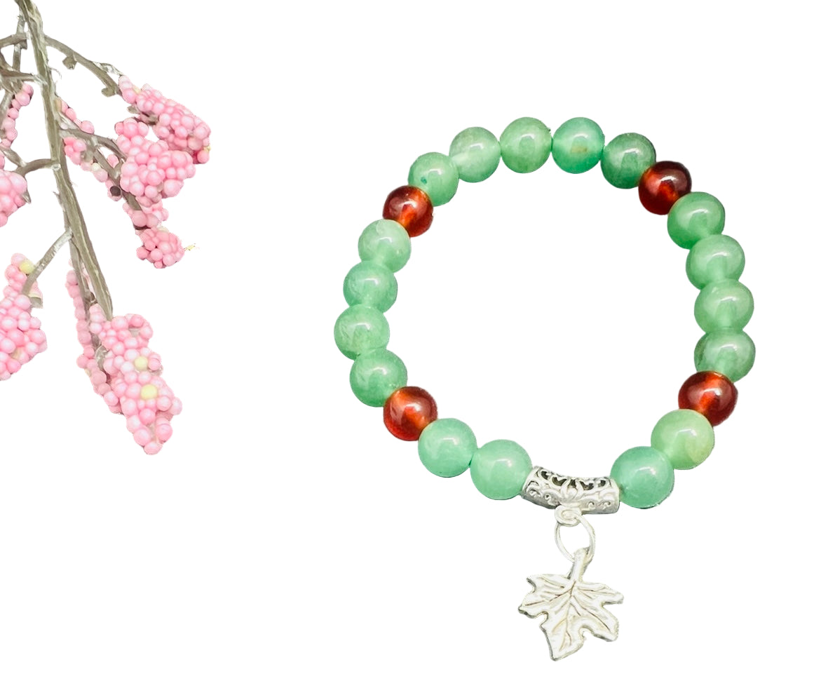 Enhance your style with our Orange and Green Bead Bracelet, featuring a unique and eye-catching leaf pendant made of German Silver.