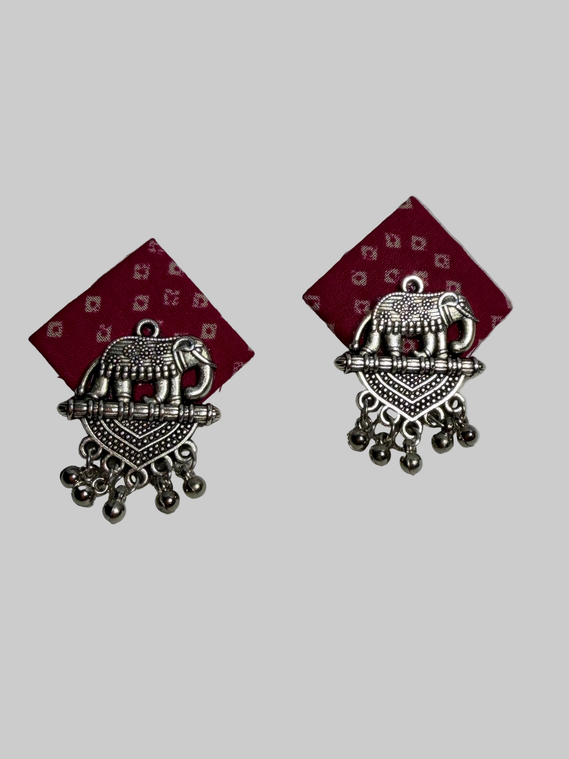Elevate your accessory collection with these exquisite Fabric Elephant Earrings, crafted from authentic Bandani fabric adorned with graceful elephant motifs. Delicate ghungroo accents add a melodic charm and traditional elegance to each piece. Lightweight and refined, these classical earrings seamlessly blend cultural heritage with contemporary sophistication, making them an ideal choice for both festive occasions and everyday wear.