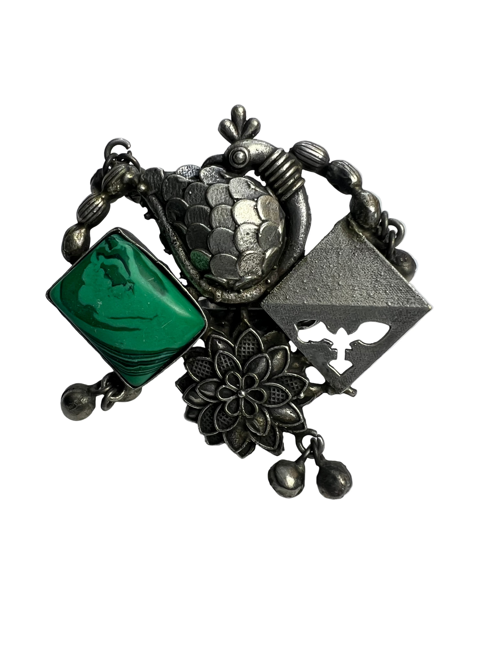 This German Silver adjustable ring features a striking green textured stone that captivates with its unique allure. Crafted for sophistication, its adjustable design ensures a perfect fit, blending classic metal elegance with a bold, eye-catching centerpiece. Ideal for those seeking refined, versatile jewelry that enhances any ensemble.