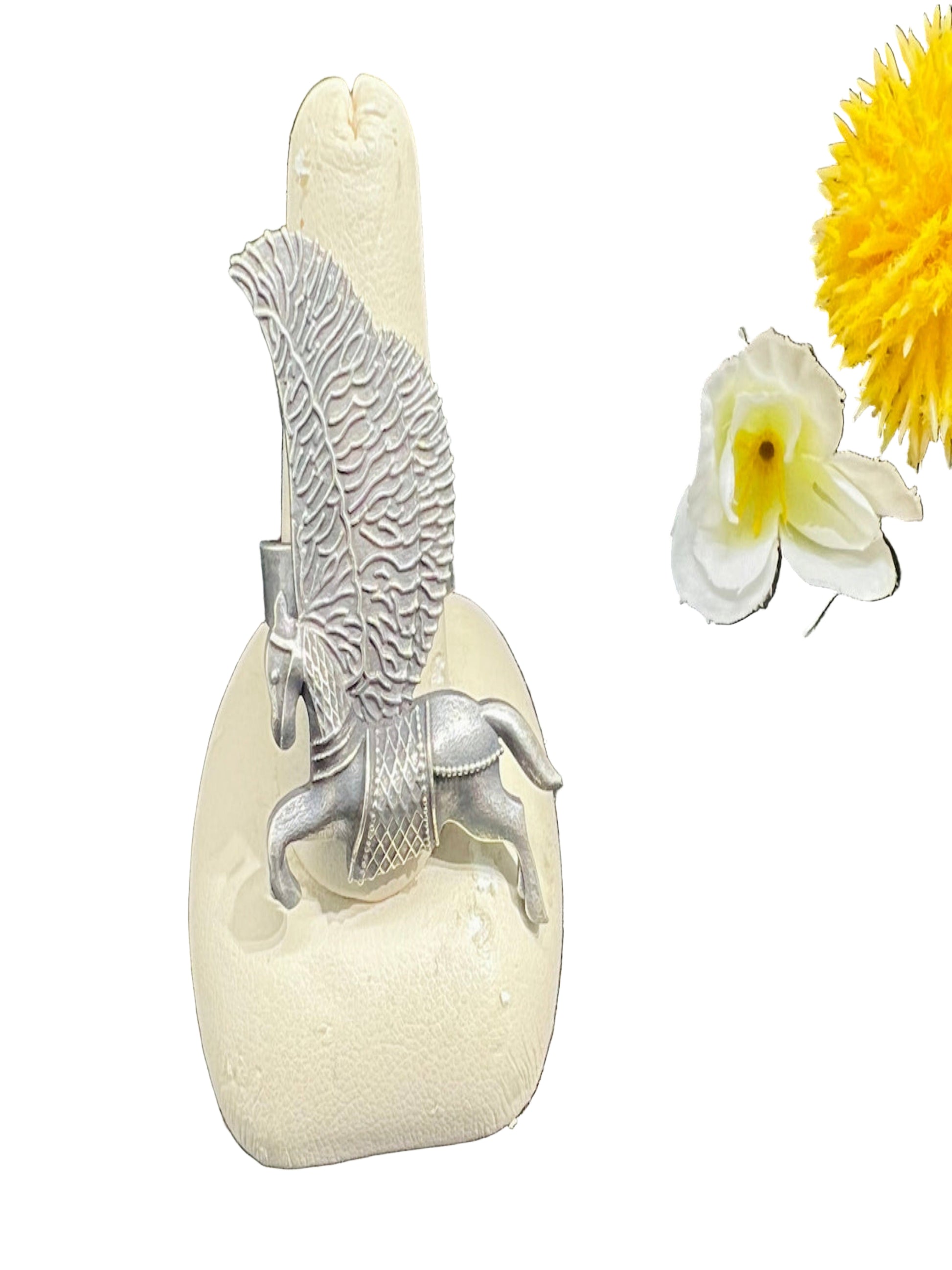 A horse-themed German silver ring suitable for daily wear and versatile enough to pair with traditional or Indo-fusion wear. Its great to have pieces that can be easily adjusted to ensure comfortable fit.