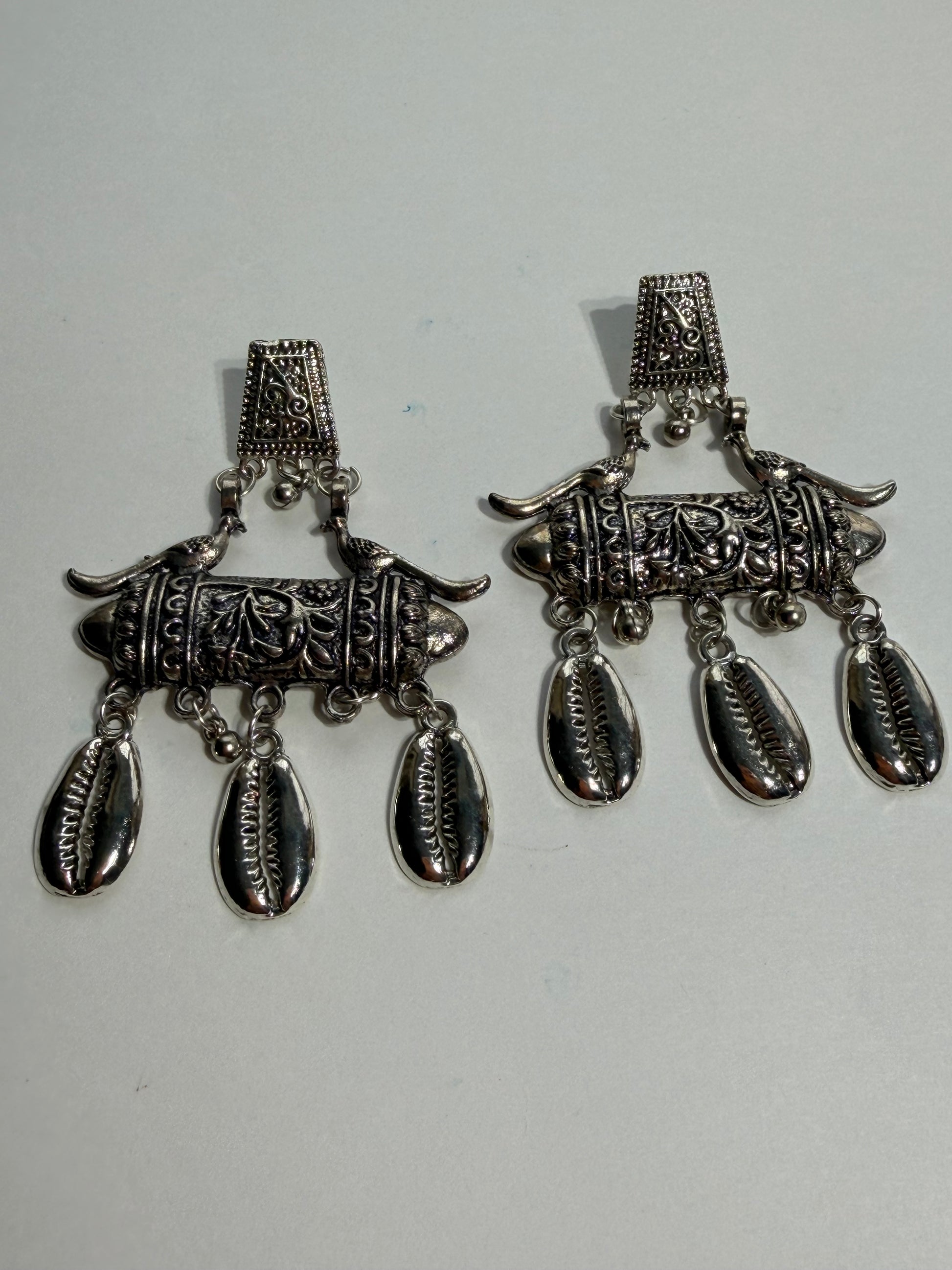 Embrace distinctive style with these carefully curated German silver earrings, showcasing authentic kodi shells in an understated yet striking composition. The cool metallic sheen of German silver provides an elegant counterpoint to the warm, textured beauty of each cowrie element.