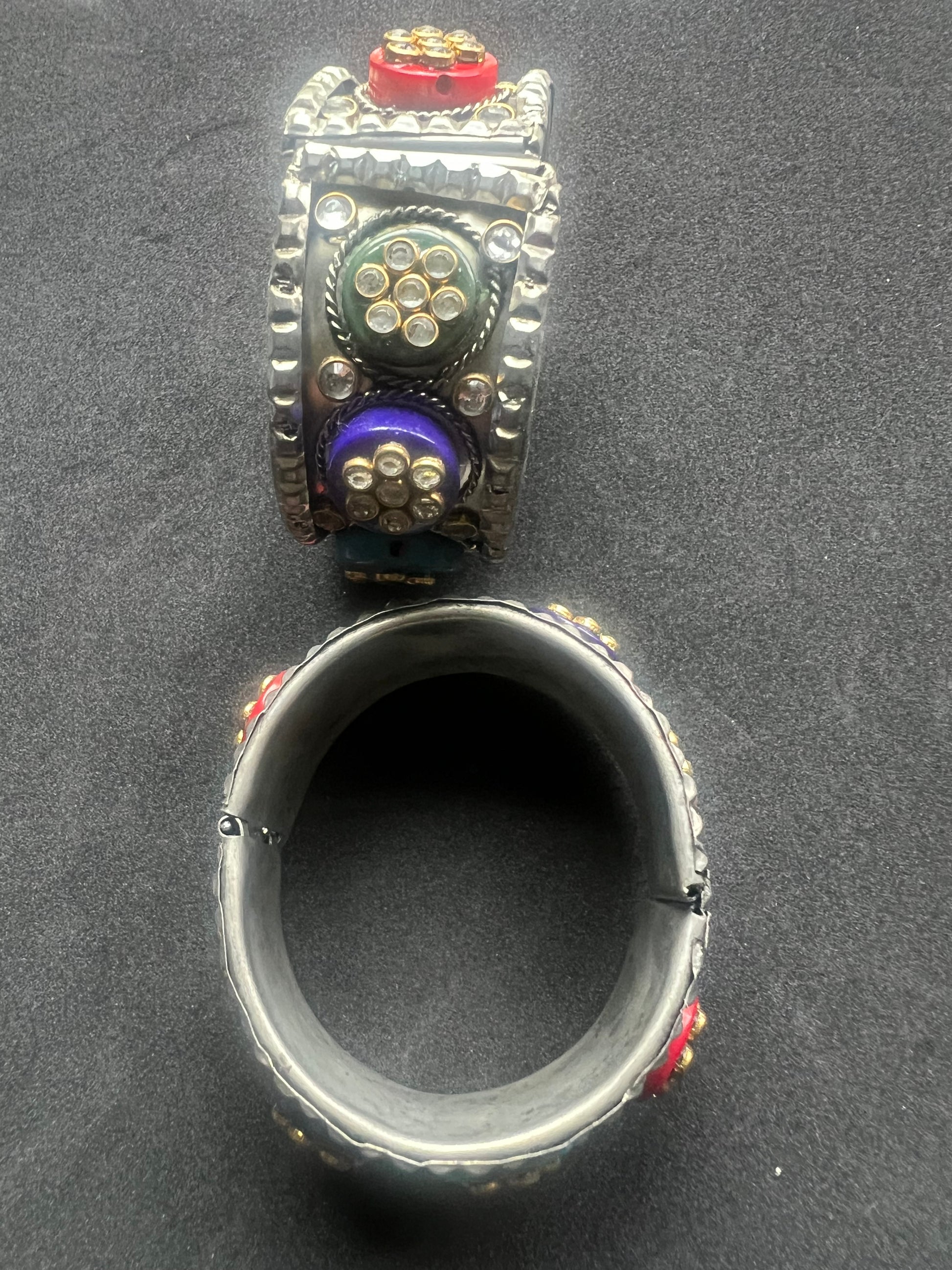 Elevate your style with these Kundan Dual Tone Openable Bracelets, crafted from elegant German Silver. Their dual-tone finish offers a regal appeal while remaining lightweight for all-day comfort. The openable design ensures a perfect fit, making them a sophisticated accessory that blends tradition with modern ease.