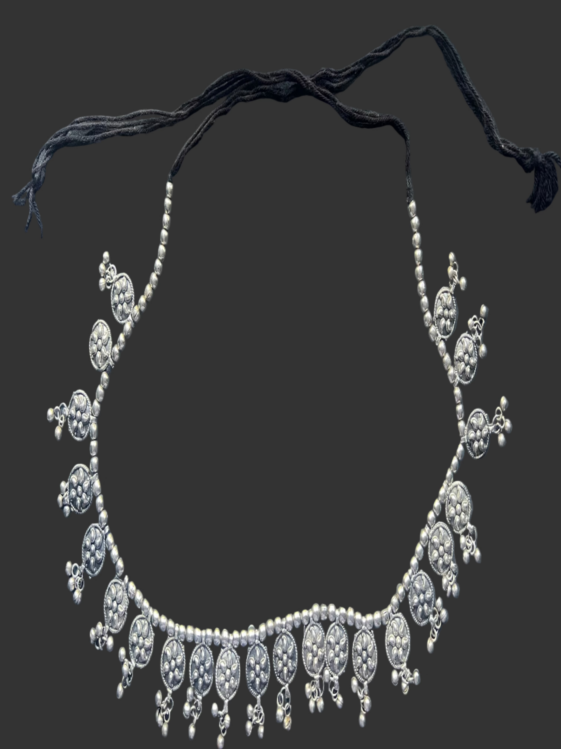 The Oxidized Flower Waist belt offers a sophisticated accent to your festive wardrobe. Its lightweight design ensures comfort, while the delicate oxidized floral detailing lends an elegant, timeless appeal, making it the perfect accessory to complement celebratory outfits with grace.
