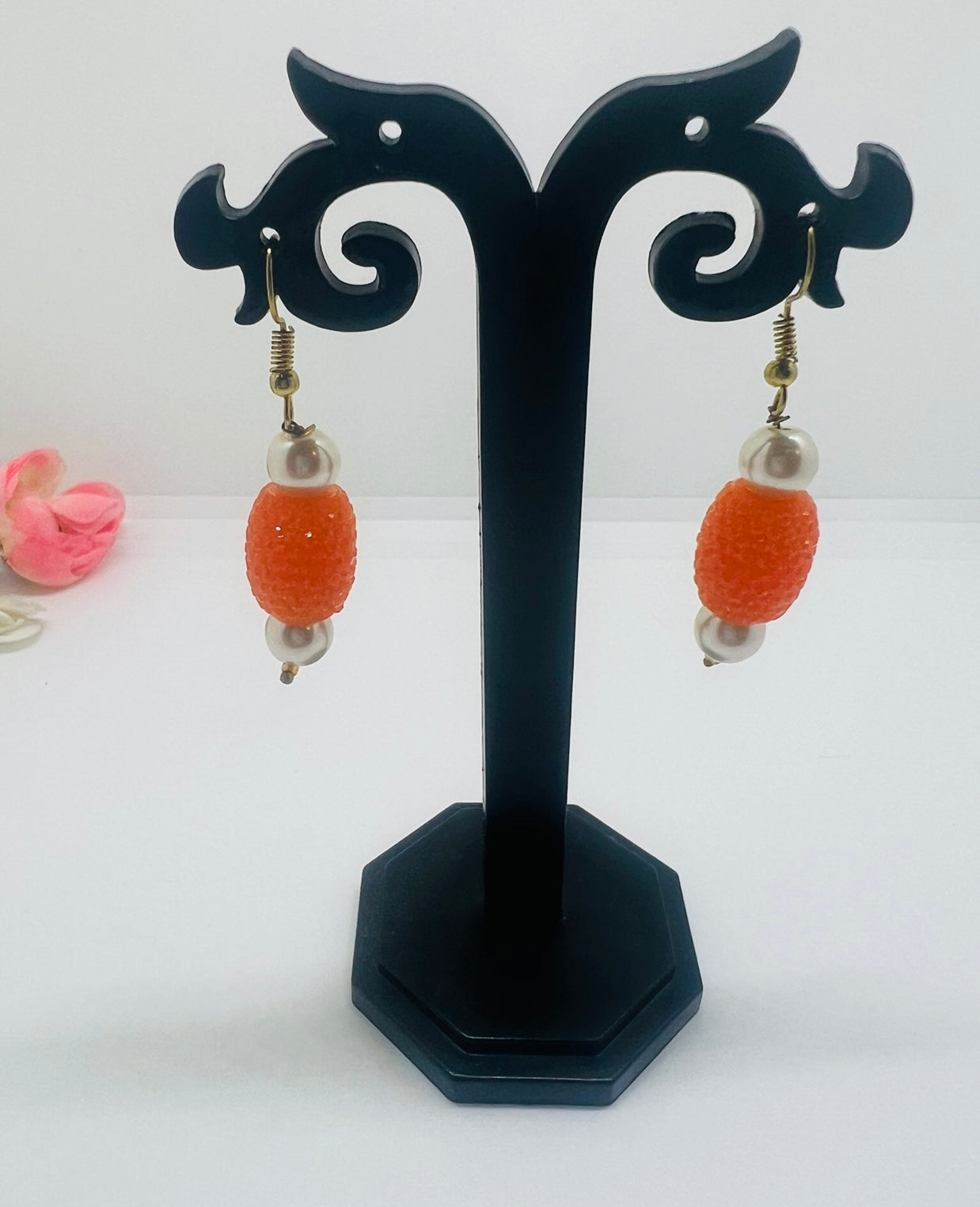 This Pearl & Bead Necklace with earrings is the perfect combination of style and comfort. The light weight earrings are ideal for daily wear and the vibrant orange color adds a pop of color to any outfit.